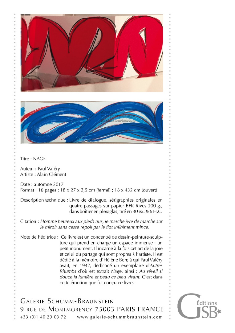 "Nage", livre de dialogue entre un texte de Paul VALÉRY et des sérigraphies originales de Alain CLÉMENT, 30 ex.