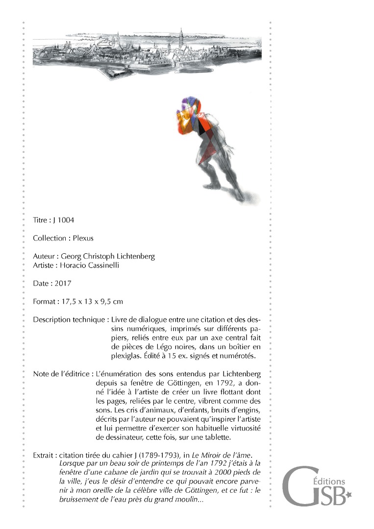"J1004", livre de dialogue entre une citation de LICHTENBERG et des dessins d'Horacio CASSINELLI, 15 ex.