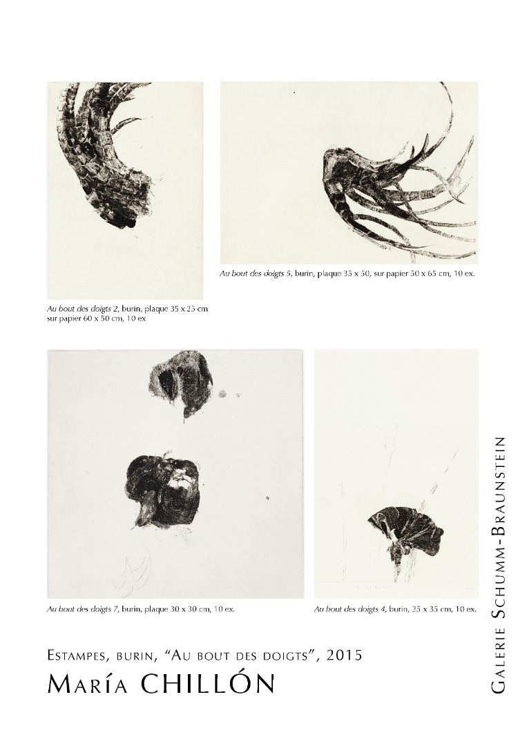En 2008, à peine arrivée à Paris, j’ai intégré l’atelier Contrepoint où j’ai découvert la technique du burin. Petit à petit, celle-ci a pris une place prépondérante dans mon œuvre. Je suis tombée sous le charme de cet outil et du trait qu’il engendre, à la fois, froid et dur, mais libre et sensible dans la main des maitres.